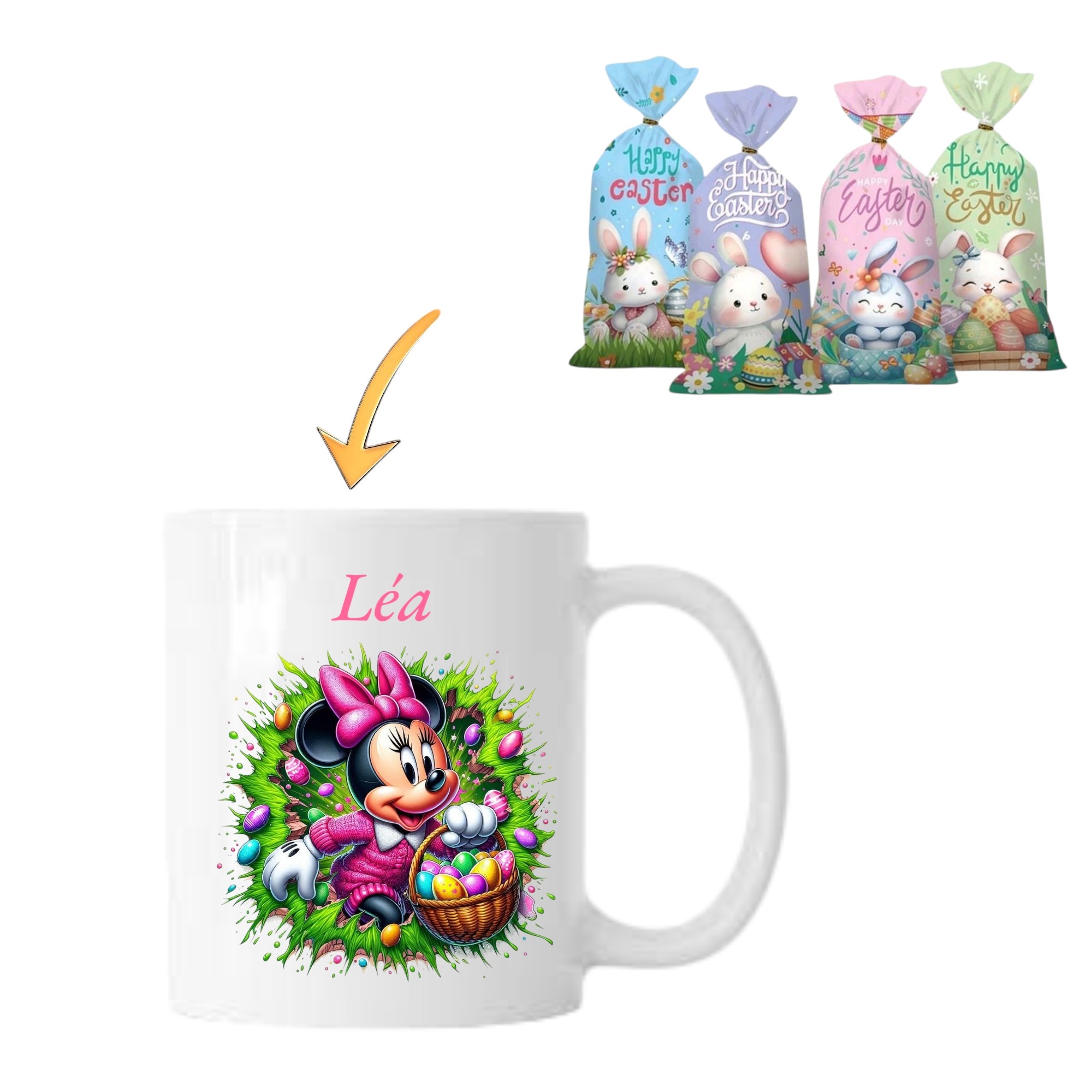 Tasse pâques personnalisée avec chocolat à l'intérieur minnie
