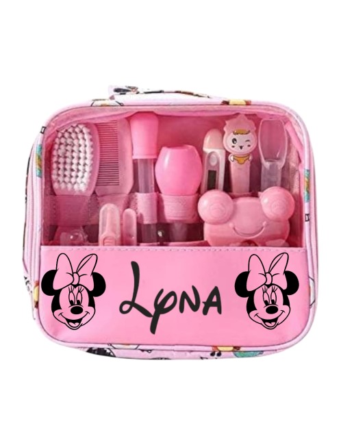 Trousse de soins bébé personnalisée avec accessoires mickey , minnie