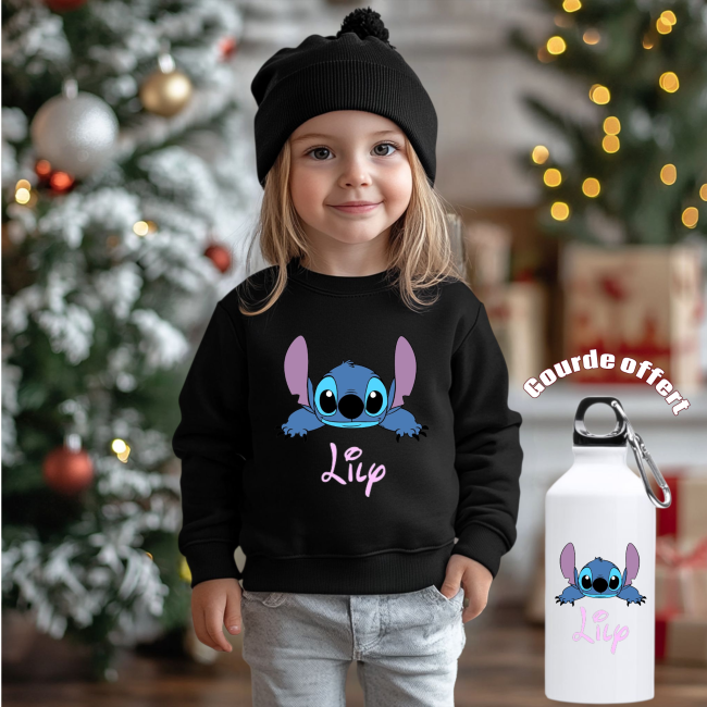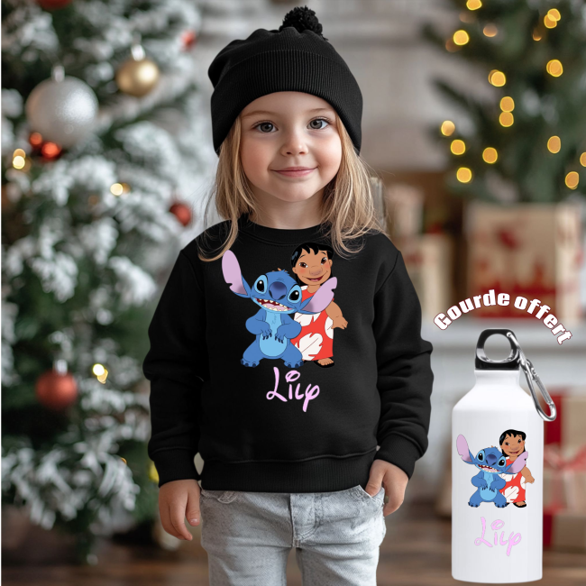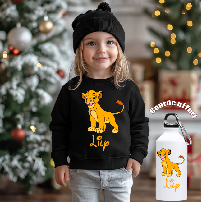 Pull-over personnalisé enfant + gourde offert minnie , stitch. Simba , reine des neiges