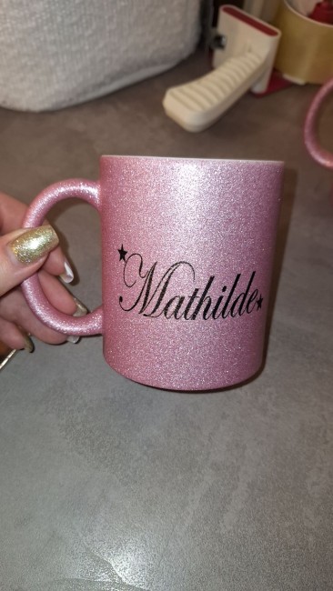 Tasse pailletée rose personnalisée avec prenom ou texte