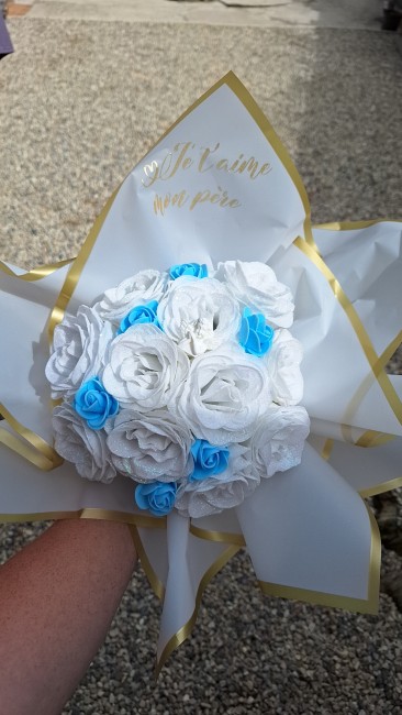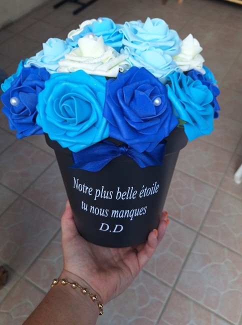 Bouquet de 12 roses éternelle artificielle blanc et bleu pour monument funéraire personnalisé