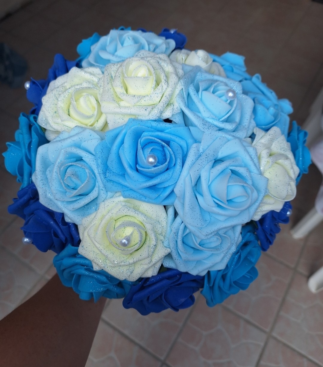 Pot funéraire personnalisé roses bleu et blanche + texte