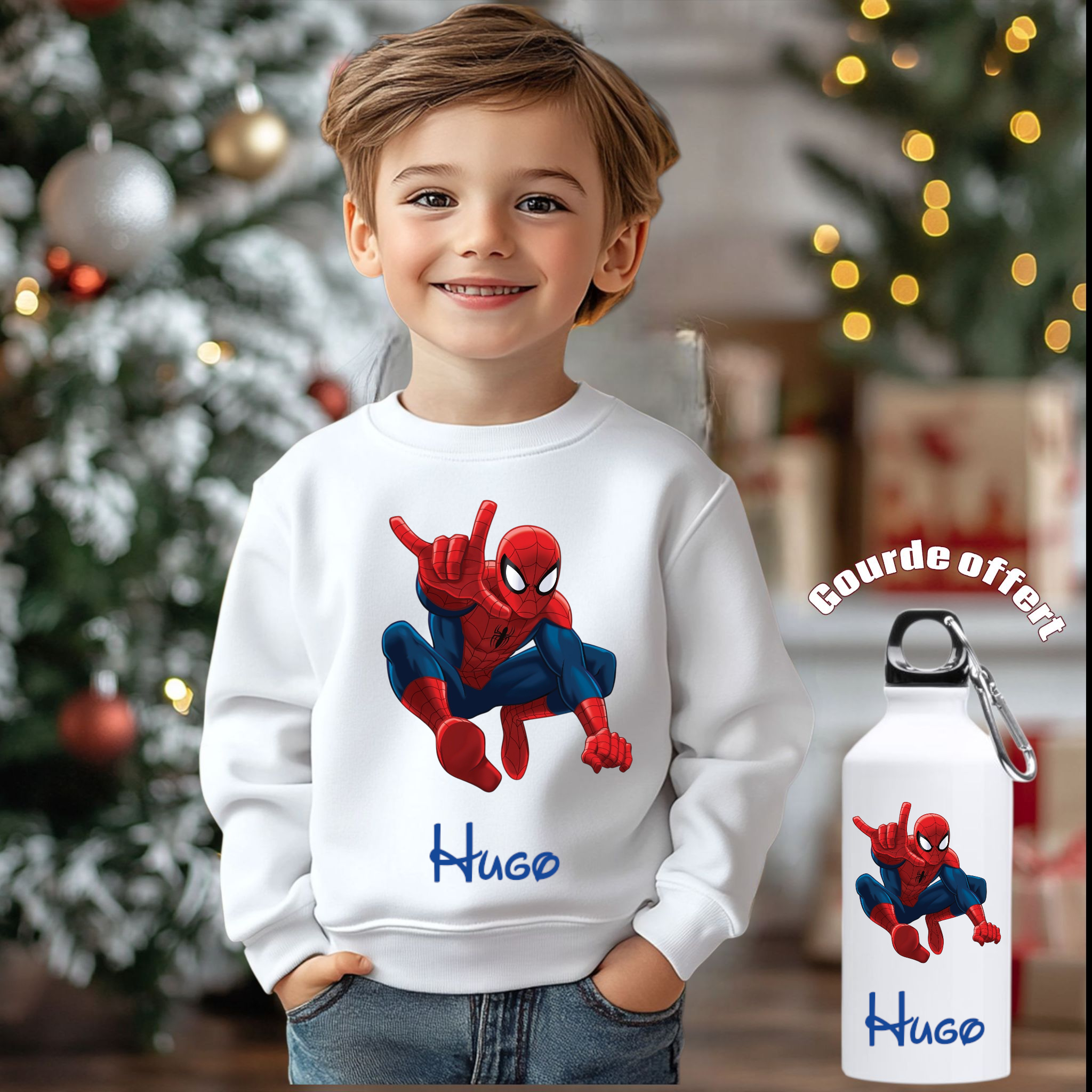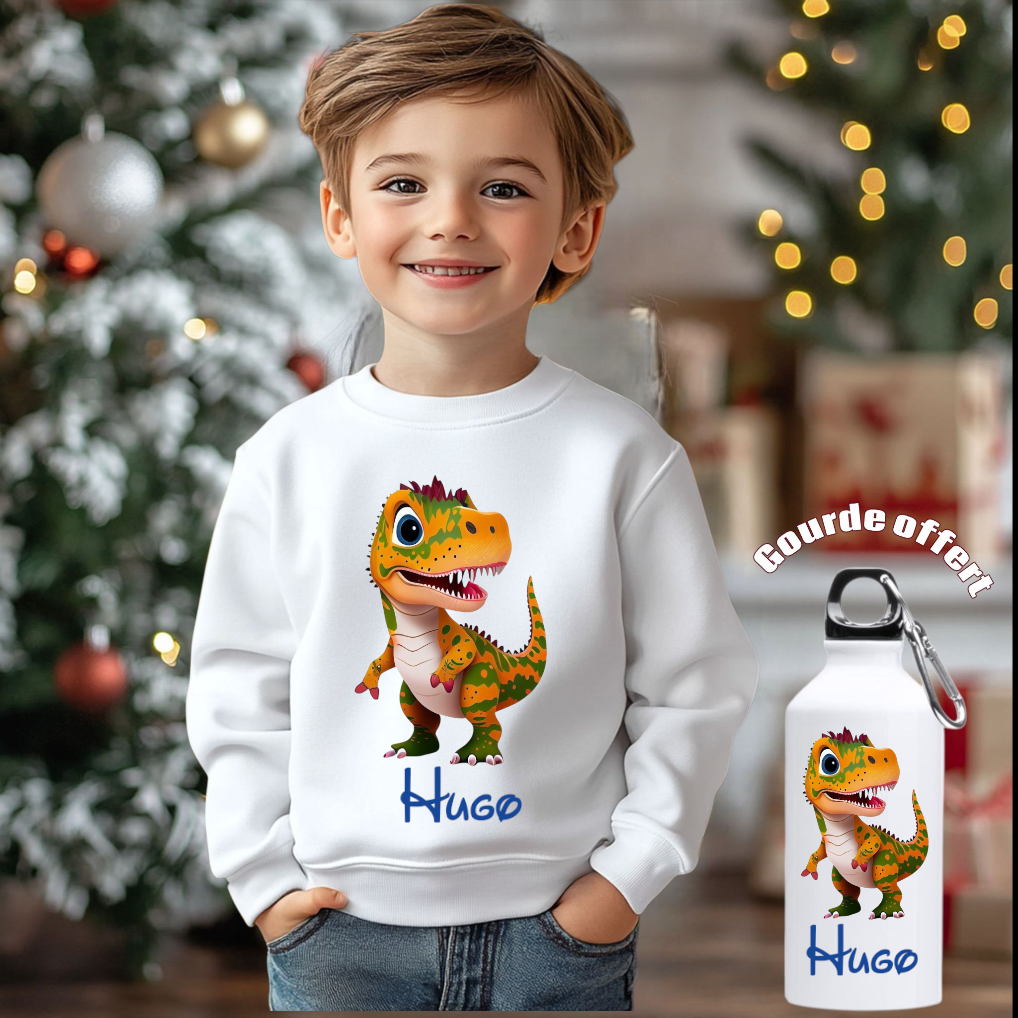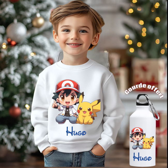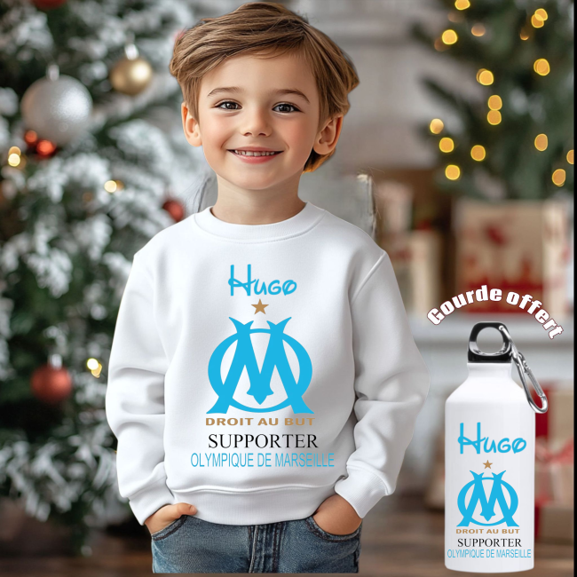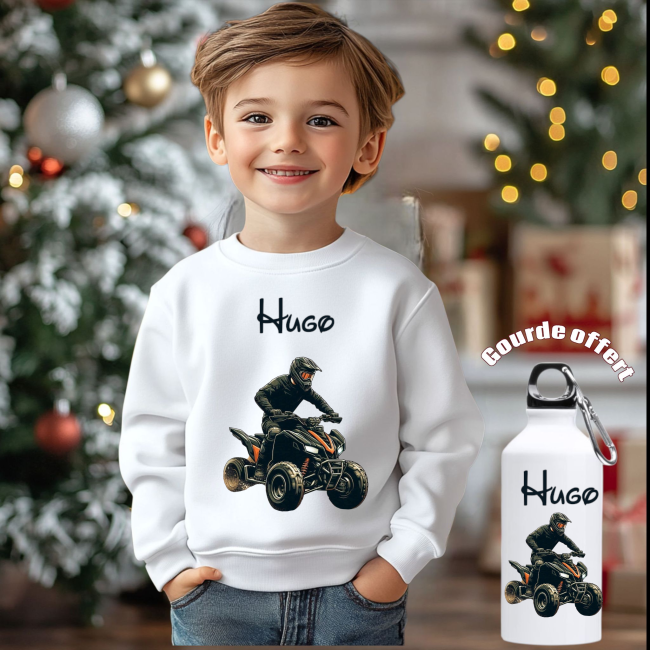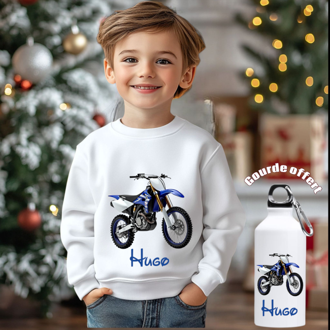 Pull-over personnalisé enfant + gourde offert moto, dinosaure , om , psg , rcl , tracteur, quad