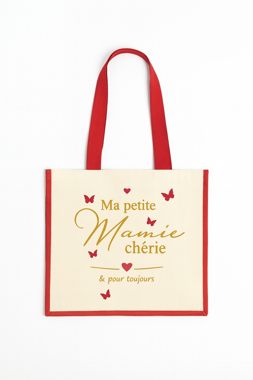 Sac en jute laminé avec une face en coton idéal et de longues poignées. 320