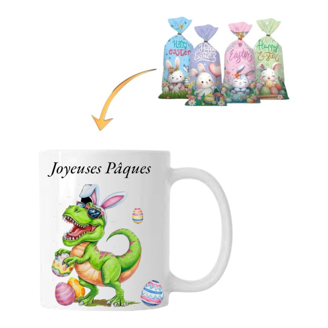 Tasse pâques personnalisée avec chocolat à l'intérieur dinosaure